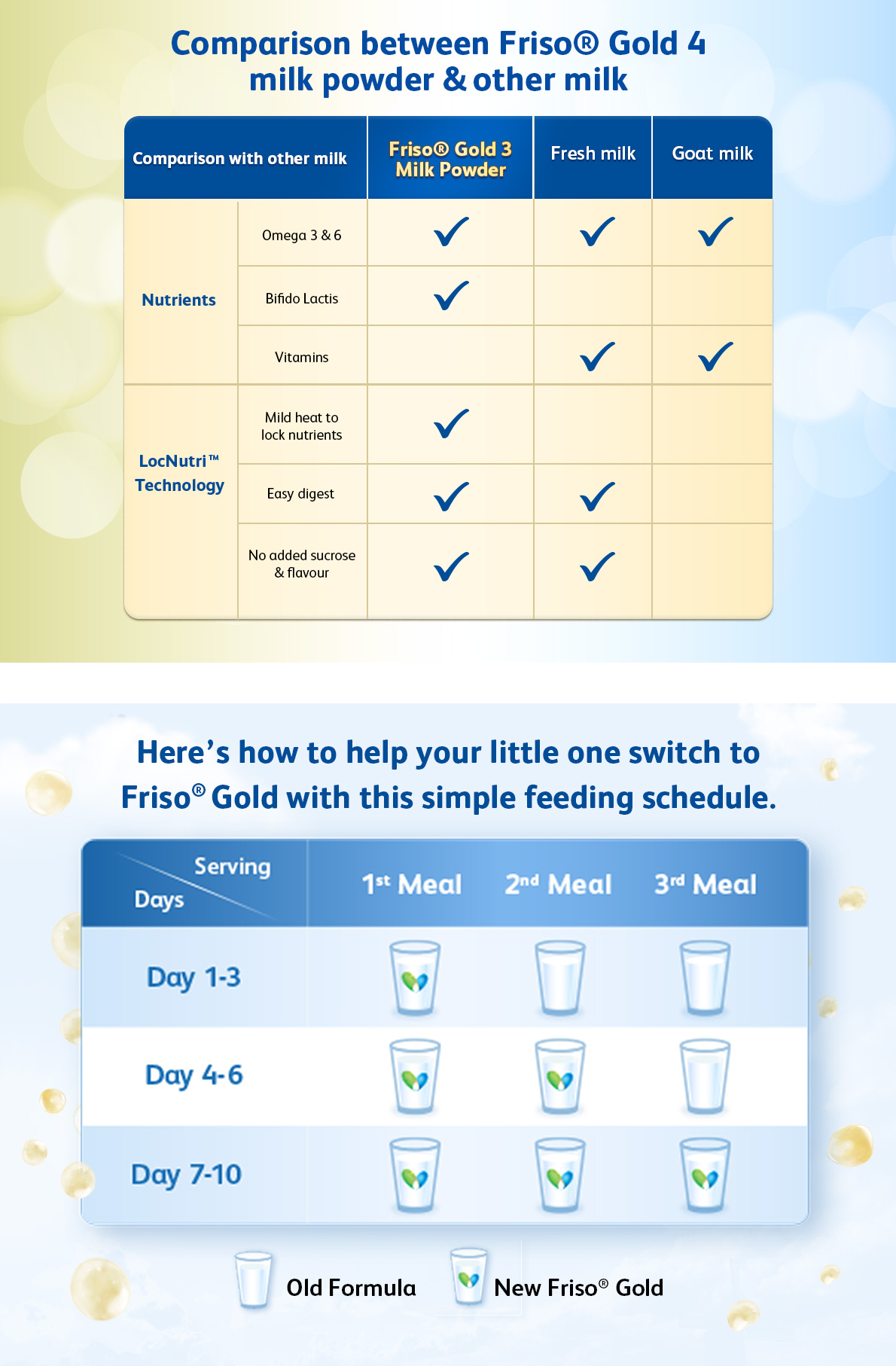 Friso® Gold 4 has the essential nutrients such as Vitamin D, Vitamin B6 and C, Taurine, Selenium, GOS, Zinc and DHA which supports your child’s overall growth and natural body resistance. Friso Gold's LocNutri™ technology preserves nutrient in it’s native structure hence giving your child the nutrition he needs for an easy digestion, thus allowing him to be stronger inside.