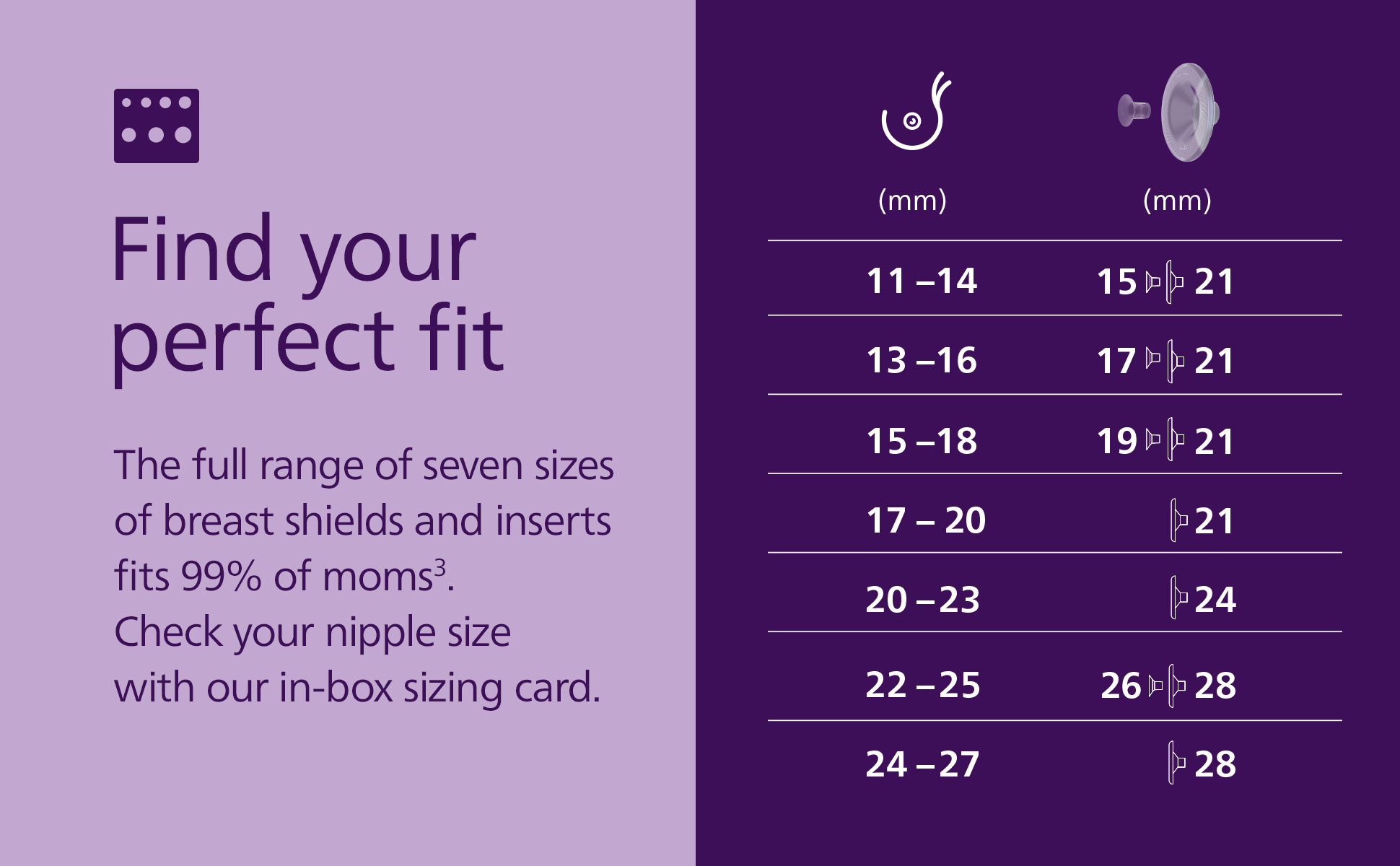 We support every mom to feel their best and having the right fit is an essential part of that. Our range of breast shields and shield insert sizes fits 99% of moms. Available to buy separately, you can experience your ultimate comfort while pumping.