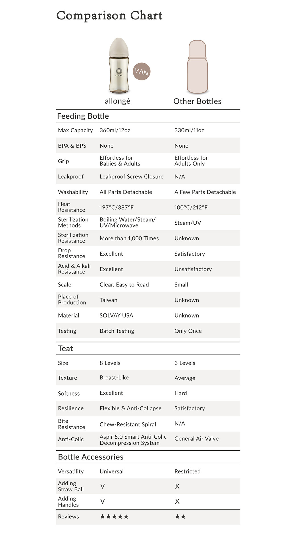 Simba, the world’s top feeding bottle maker. With 30 years' experience in bottle making, we know exactly what new parents would need, constantly focusing on the functionality of the products in harmony with aesthetics and going beyond expectations. Your voices are heard: allongé PPSU Anti-Colic Feeding Bottle - the birth of the world’s top feeding bottle.