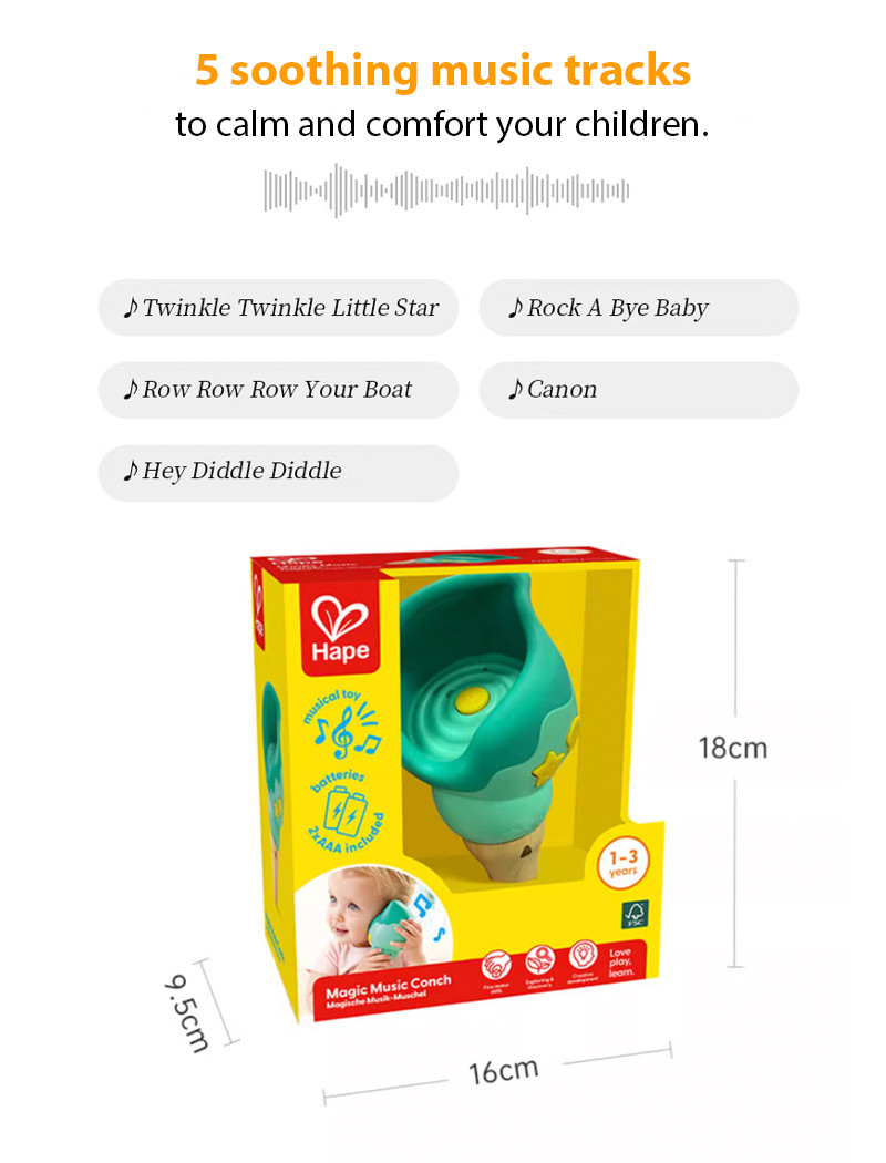 GENTLE SOOTHING MUSIC: The music from the conch is gentle and soothing, helping to calm and comfort your children.
