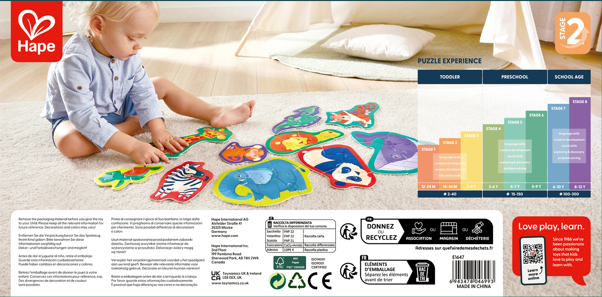 FUN FOR ALL AGES: Junior puzzle solvers can start off easy with the two- and three-piece puzzles. Once they master the basics, they can move onto the larger and more challenging six-piece jigsaws.