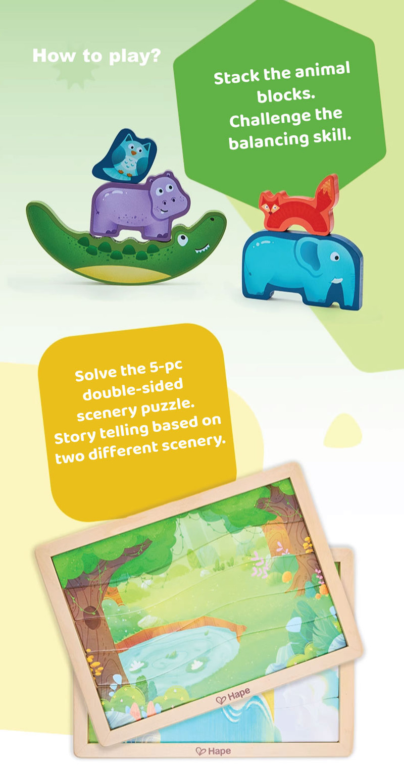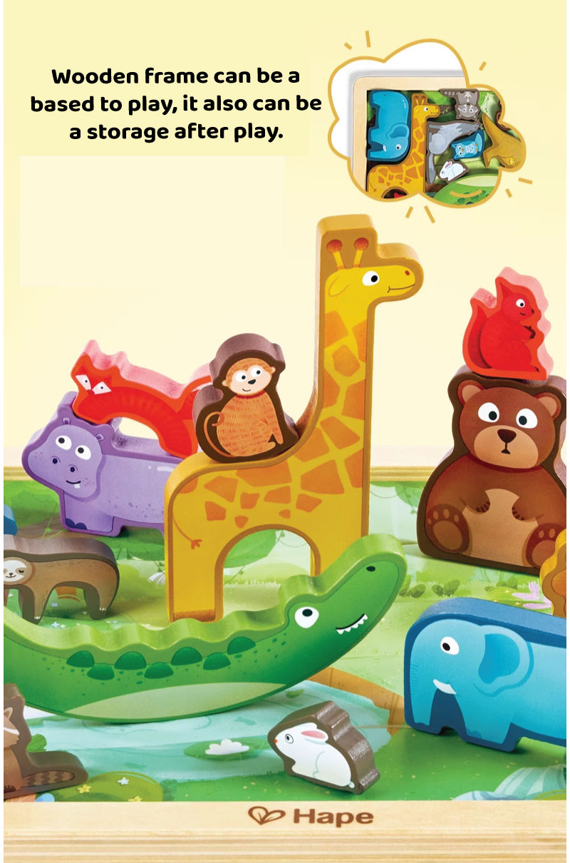 MULTIPLE PLAY OPTIONS: Children can choose to place the animals within a wooden frame or let their creativity flow by stacking them in unique and imaginative ways.