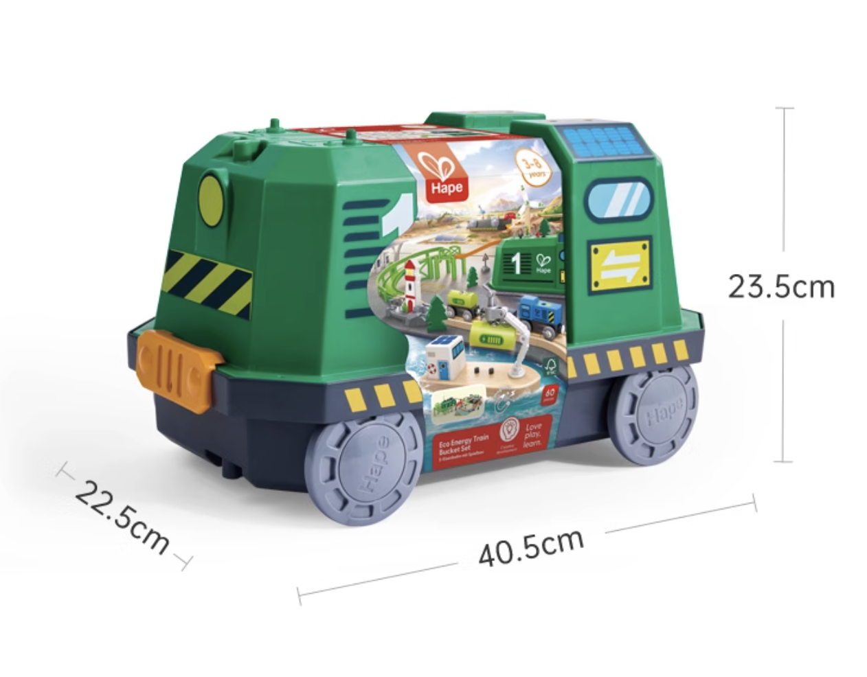 Unbox endless adventures with the Hape Eco Energy Train Bucket Set, where hands-on play meets sustainability. With solar charging stations, wind-powered accessories, and a train-shaped storage box that doubles as part of the play scene, kids can build, learn, and explore all in one go. Perfect for introducing renewable energy concepts in a way that’s exciting and interactive!