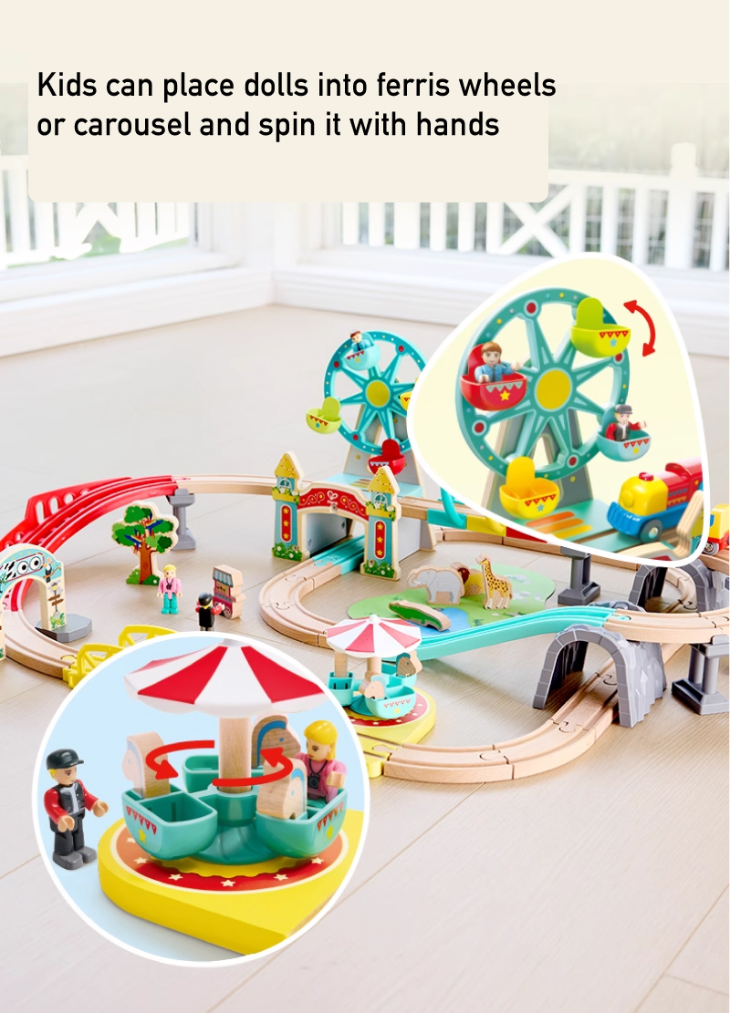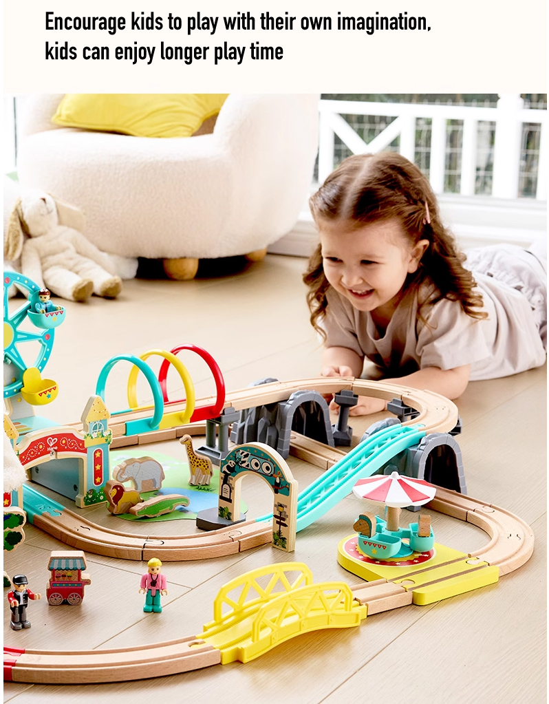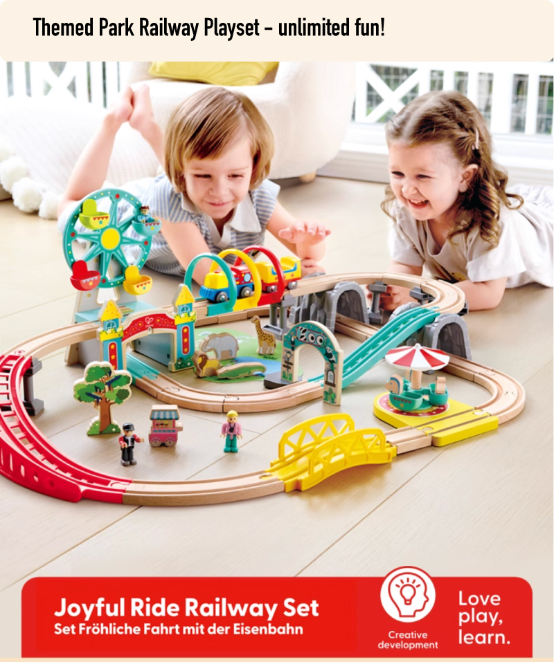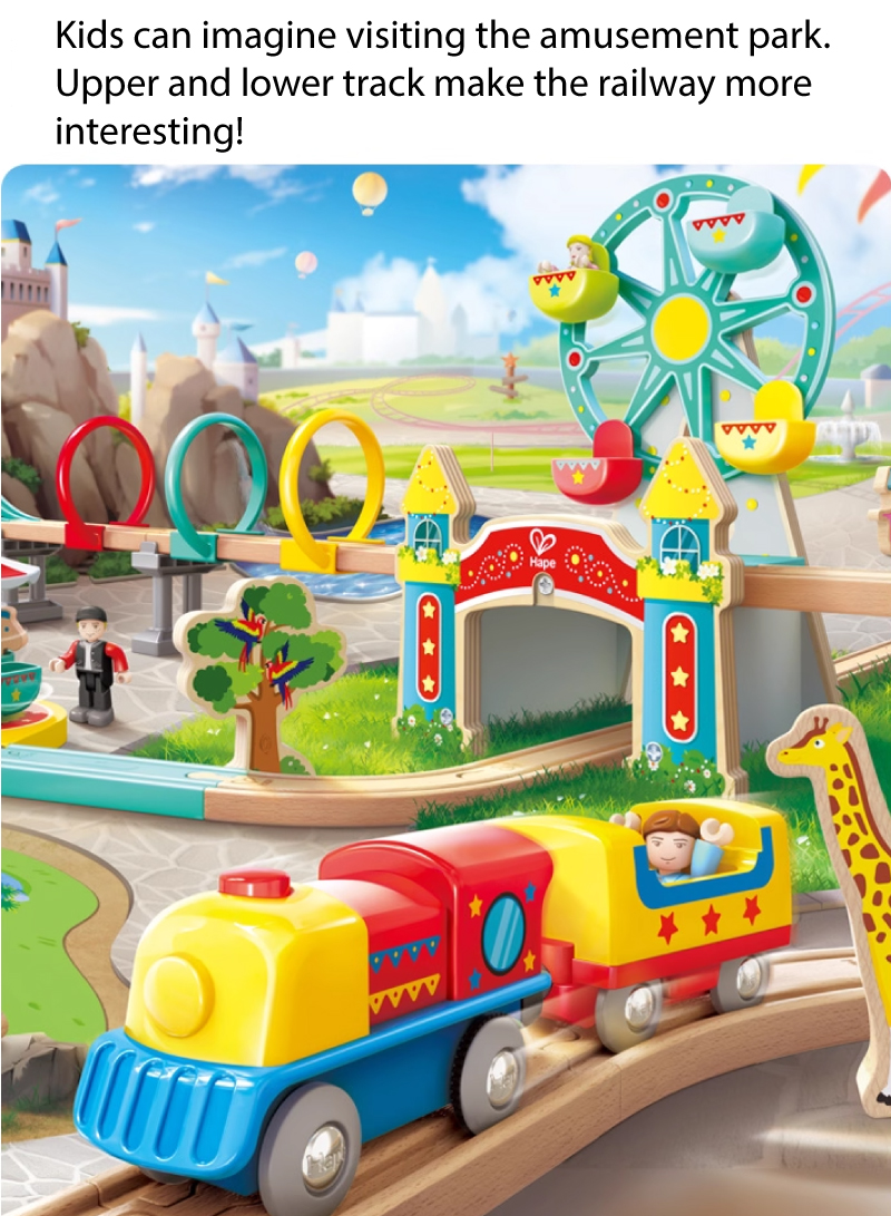 Introduce your child to the joy of play with our amusement-park-themed railway set, featuring colourful park scenes, sound-emitting tracks and endless creative possibilities!