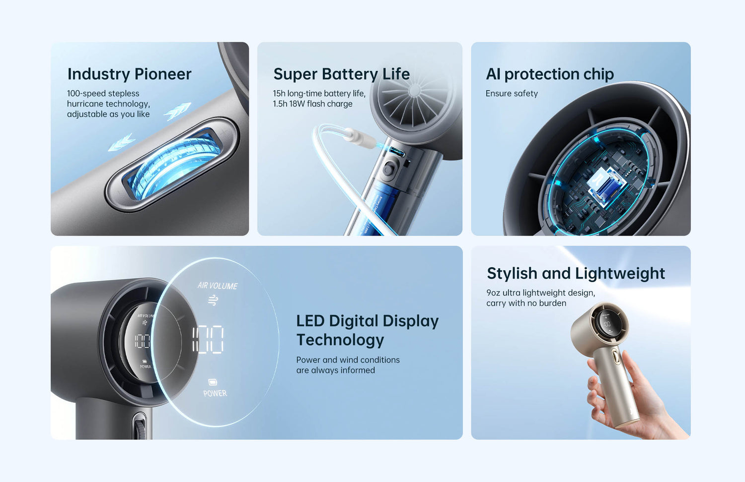 100-speed Level Hurricane Technology: Personalized wind power, adjustable at will.
